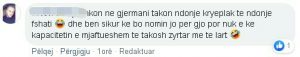 “Shkon ne Gjermani takon ndonje kryeplak te ndonje fshati 😂 dhe ben sikur ke bo nomin jo per gjo por nuk e ke kapacitetin e mjaftueshem te takosh zyrtar me te lart 🤣”,-shkuan një komentues.(Tema)/l.m