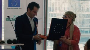 Ceremonia e shpërndarjes së çmimit “Kryebashkiaku më miqësor ndaj komunitetit rom” u organizua nga eurodeputetja, Soraya Post, Drejtori i Përgjithshëm për Fqinjësinë dhe Negociatat e Zgjerimit, Christian Danielsson dhe Rrjeti i Organizatave Europiane për Romët, në përfundim të fushatës “Iniciativa e Përbashkët për Fuqizimin e Shoqërisë Civile të Romëve në Ballkanin Perëndimor dhe Turqi”.