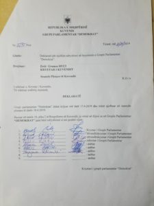 Në dokument, Rudina Hajdari tashmë nga kryetare, bëhet anëtare e thjeshtë e grupit Parlamentar Demokrat. “Nje falenderim te veçante per koleget e mi te cilet verdiktin e tyre ne lidhje me kryesimin e Grupit e dhane jo vetem me vote por edhe me firmë”, shkruan kreu i ri i grupit Korab Lita, ndërsa për të vërtetuar postin, publikon dhe foto të dokumentit. /l.m