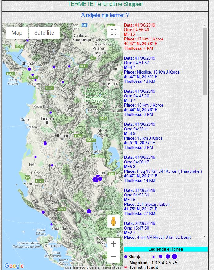 Instituti i Gjeoshkencës, Energjisë, Ujit dhe Mjedisit ka dhënë informacione paraprake mbi një seri tërmetesh të cilat tronditën mëngjesin e sotëm zonën e Korçës.