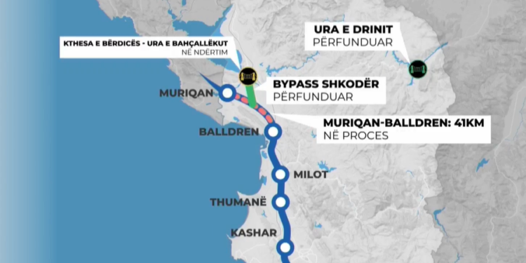 “Kemi dy korridore, Korridorin Blu dhe Korridorin VIII. Korridori Blu është një nga korridoret më të rëndësishme evropiane, një korridor i transportit të mallrave dhe të pasagjerëve. Murriqan-Balldren është një aks i cili e ka studimin e tij dhe ne na mbetet vetëm për të vendosur mënyrën e financimit të këtij projekti. Loti Thumanë-Milot është një projekt i përfunduar, është një kontratë e lidhur, jemi në fazën e mobilimit të kantierit për të nisur direkt punimet. Thumanë-Kashar është një segment i përfunduar. Nga 30 Qershori e deri më sot kanë kaluar 6.5 milionë automjete. Në harkun e 2 viteve do të dorëzojmë Thumanë-Milot dhe Milot Balldren”, zbuloi Balluku.