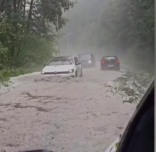 Sipas pamjeve të shpërndara nga qytetarët lokalë, shiu i shoqëruar nga breshëri ka vështirësuar qarkullimin në zonën e Brezovicës, ku si pasojë e përmbytjeve të menjëhershme është ndërprerë rruga kryesore që të çon drejt këtij destinacioni turistik malor të vendit.