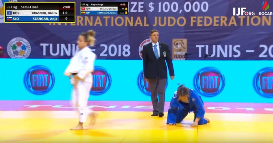 Distria Krasniqi ka mposhtur sllovenen Anja Stangar për të kaluar në finale të kategorisë deri në 52 kilogramë në Grand Prixin që po mbahet në Tunizi.