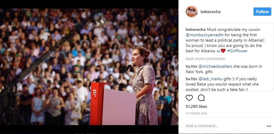Ajo shkruan se Kryemadhi do të bëjë më të mirën. Kujtojmë që Rexha dhe Kryemadhi janë kushërira.