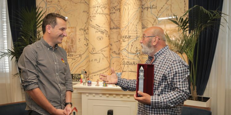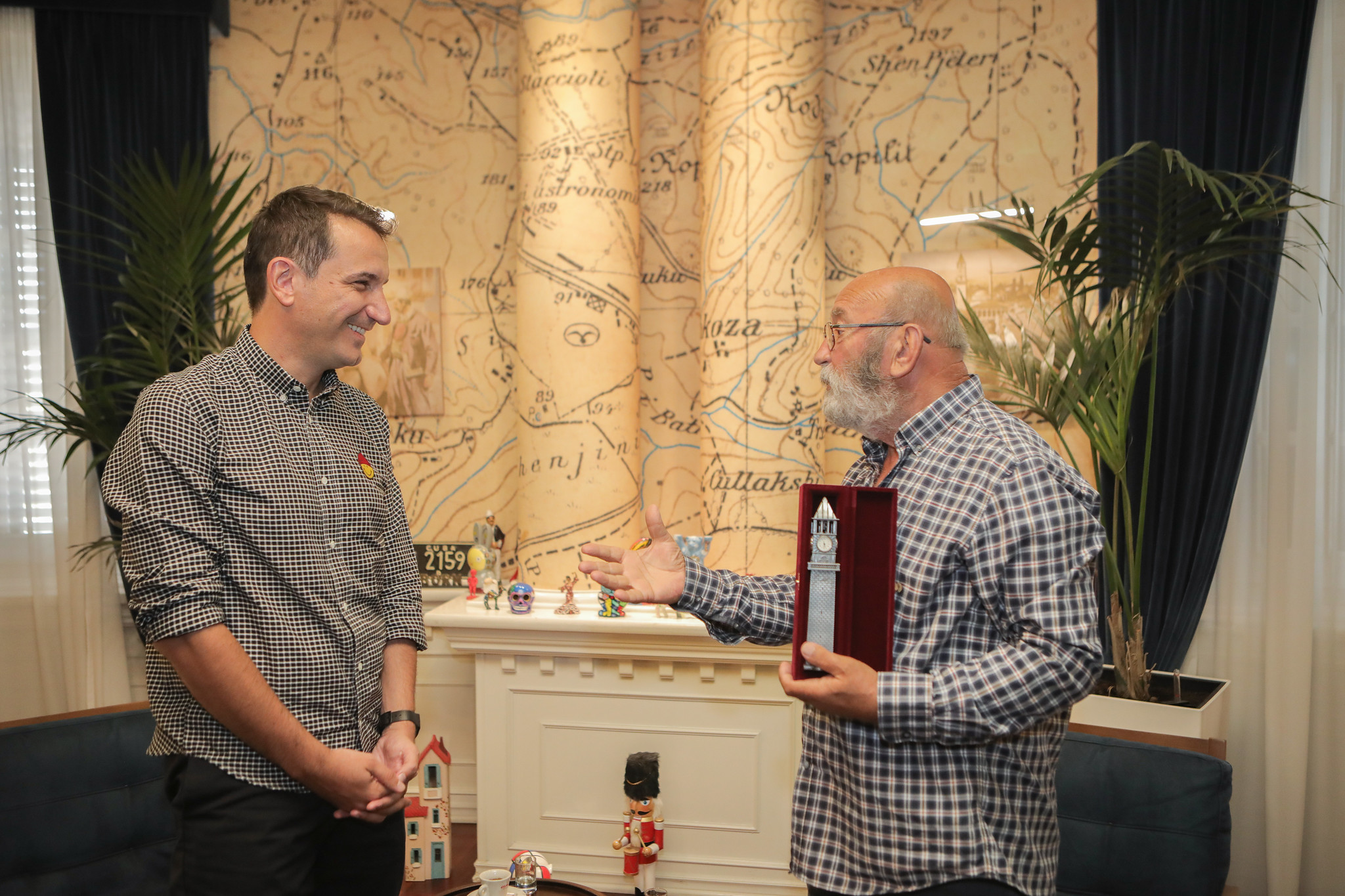 Kryetari Veliaj i dhuroi simbolikisht, në shenjë mirënjohjeje artistit të nderuar, Kullën e Sahatit të Tiranës.