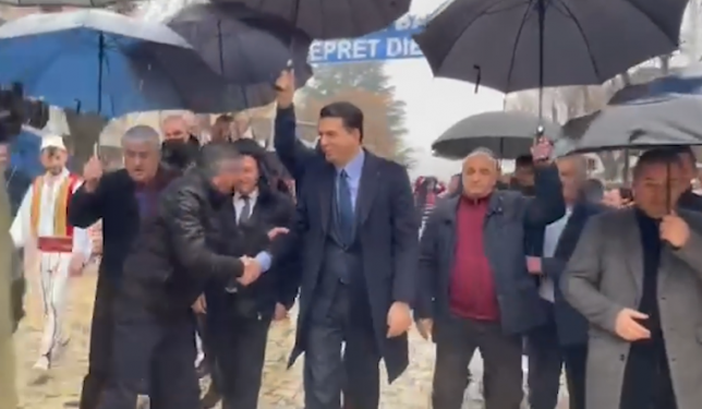 Basha është shoqëruar nga demokratët që gjatë rrugës me makina, ndërkohë që në hyrje të qytetit është vendosur një pankartë “Kryetar Basha, ju mirëpret Dibra juaj”.