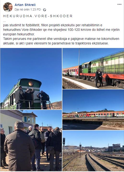 “Takim përurues me partnerët dhe vendosja e pajisjeve matëse në lokomotivën aktuale, si akt i pare vlerësimi te parametrave te trajektores ekzistuese”, shkruan Shkreli.