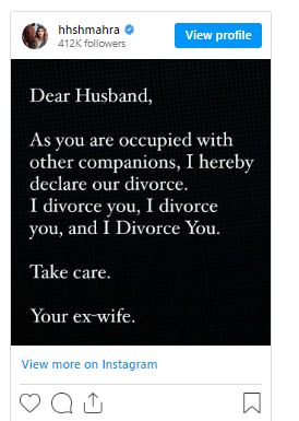 Shaikha Mahra Bint Mohammed Bin Rashid Al Maktoum, vajza e sundimtarit të Dubait, i ka kërkuar publikisht divorcin bashkëshortit të saj, Sheikh Mana Bin Mohammed Bin Rashid bin Mana Al Maktoum, në Instagram.