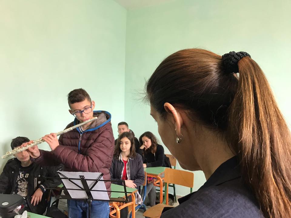 “Në shkollën artistike “Feim Ibrahimi” në #Gjirokastër me Anxhelon nga Përmeti, flautistin e ri që sot u pajis me flaut të ri siç e dëshironte. #EdukimPërmesArtit”, shkruan Kumbaro në faqen e saj në Facebook, ku ka publikuar edhe disa foto.