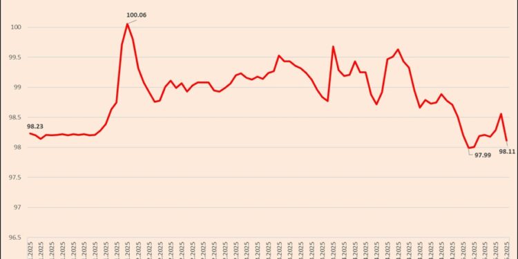 Aktualisht, kursi i këmbimit Euro-Lek ndodhet pranë pragut të 98 lekëve dhe njëkohësisht vlerës më të ulët historike, që u shënua më datë 6 maj, në nivelin e 97.99 lekëve.