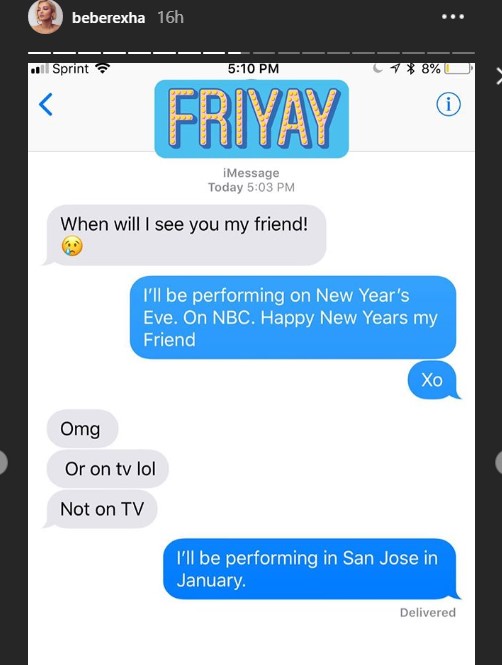 Këngëtarja shqiptare ka përjetuar një situatë të skletshme dhe ka preferuar të ndajë me të gjithë ndjekësit e saj në Instagra. Bebe Rexha ka publikuar një bisedë ku shihet se një person I ka shruar për ta përshëndetur dhe për tí lënë një takim.