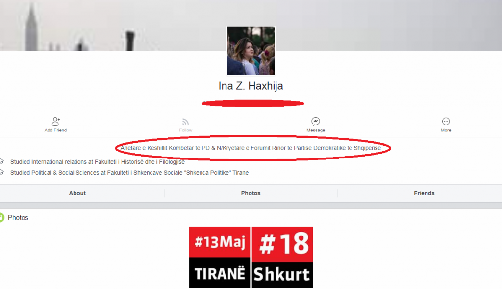 Siç duket nga fotot, Ina është një militante e zellshme dhe tejet aktive e Partisë Demokratike dhe nuk ngurron ta shprehë këtë në rrjetet sociale.