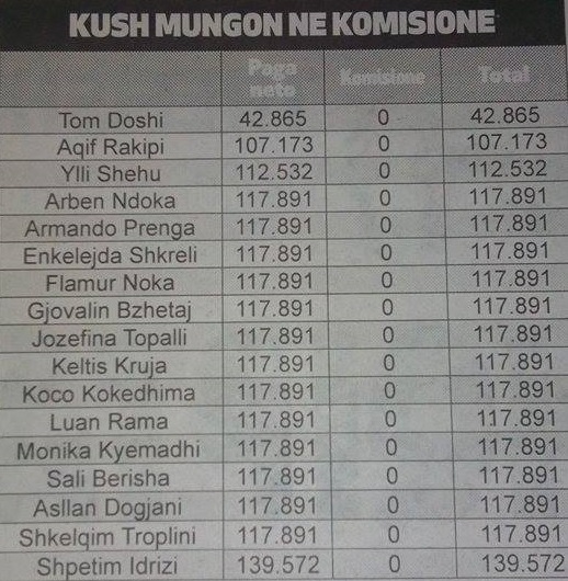 Nga tabela vërehet se 17 deputetë kanë marrë zero lekë gjatë këtij muaji për pjesëmarrje në komisione, çka do të thotë së në shtator, ata nuk kanë marrë pjesë në asnjë komision parlamentar, ku janë diskutuar projektligje, ligje dhe marrëveshje të rëndësishme për shtetin shqiptar.