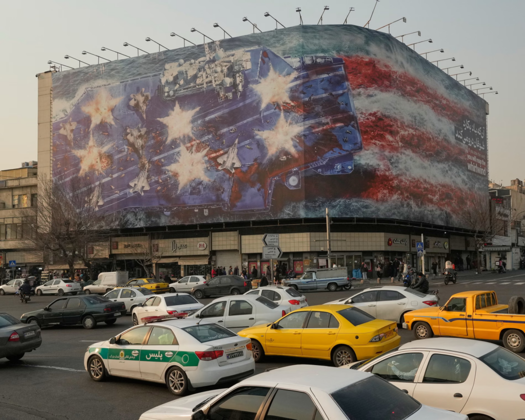 Sheshi Enghelab përdoret për tubime shtetërore dhe muralet ndryshojnë sipas ngjarjeve kombëtare. Të shtunën, komandanti i Gardës Revolucionare iraniane paralajmëroi se forca e tij është “më gati se kurrë”.
