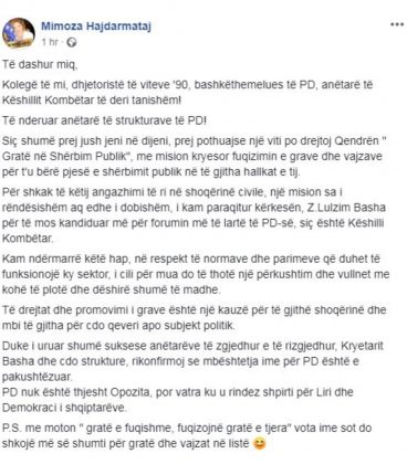 Kështu, Edvin Kulluri, Edith Harxhi, Fabian Topallaj, Erla Mëhilli, Get Minarroli, Valbona, Mezini, Arben Skënderi, Keltis Kruja, Mimoza Hadërmataj e mjaft emra të tjerë të njohur në PD kanë dalë kundër Bashës dhe mënyrës se si ai po drejton PD-në.