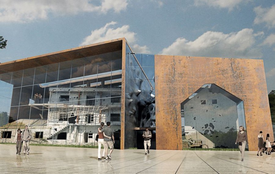 Ajo që është interesant në këtë projekt, është hapësira mes dy kullave [lexo: shtëpive]. Ajo do të pasqyronte sulmin me granata nga tanket.