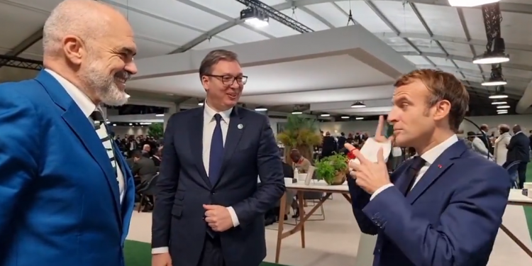 Kreu i shtetit serb ka publikuar një video në rrjete sociale ku shihet së bashku me kryeministrin Rama, edhe nën shoqërinë presidentit francez, Emmanuel Macron.