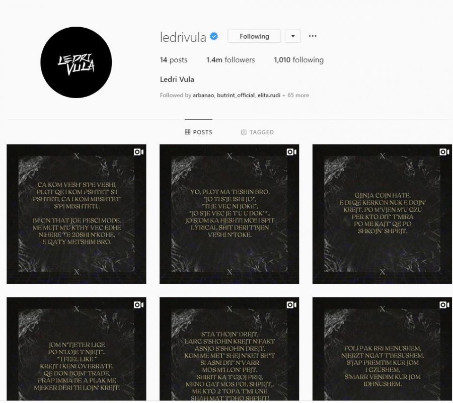 Disa ditë më parë, reperi Ledri Vula hoqi papritur të gjitha fotot e tij nga llogaria personale në rrjetin social Instagram, duke na futur të gjithëve në dyshime.