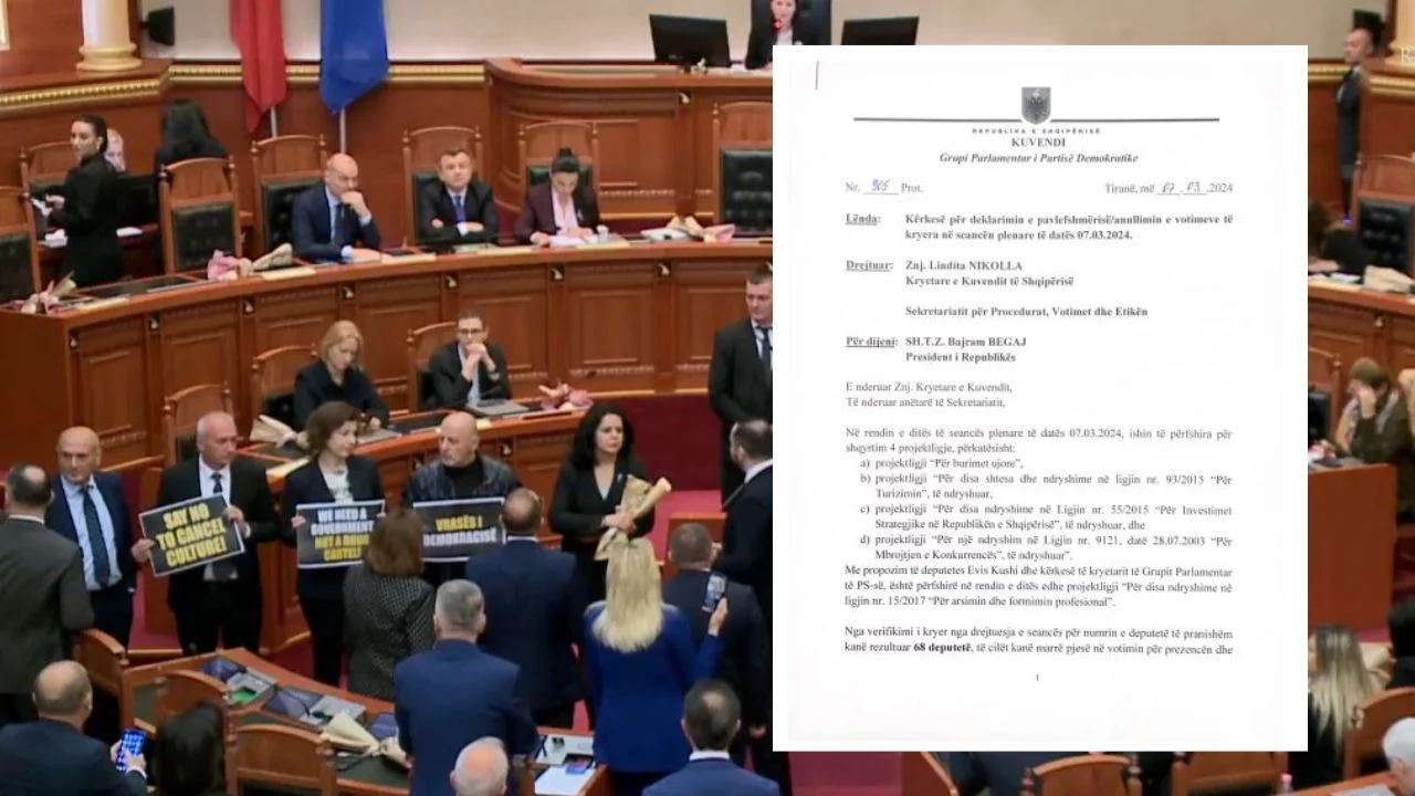 Grupi Parlamentar i Partisë Demokratike, i kërkon Kryetares së Kuvendit, deklarimin të pavlefshëm të votimit në seancën e sotme plenare.