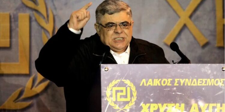 Michaloliakos themeloi dhe kryesoi një parti e cila u zbulua se ishte një organizatë kriminale e lidhur me vrasjen e një muzikanti antifashist, si dhe me tentativën e vrasjes së peshkatarëve dhe aktivistëve egjiptianë.
