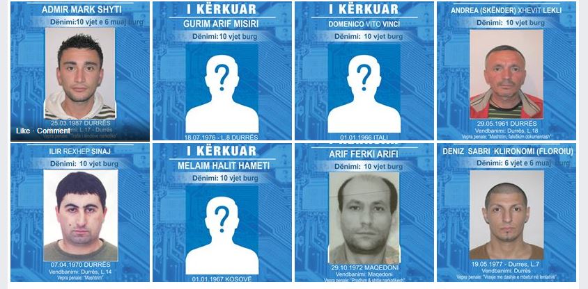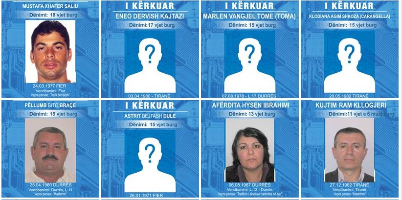 Policia e Shtetit ka publikuar listën 24 personave më të kërkuar në qarkun e Durrësit. Në mesin e tyre ka persona që janë të dënuar e burgim të përjetshëm, 35 vite e më pak.