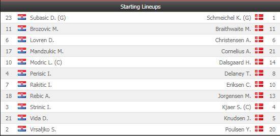 Sapo kanë dalë formacionet zyrtare të Kroacisë dhe Danimarkës që do të ndeshjen pas pak në orën 20:00. Kroatët kanë ardhur deri në këtë fazë duke treguar një formë të jashtëzakonshme.