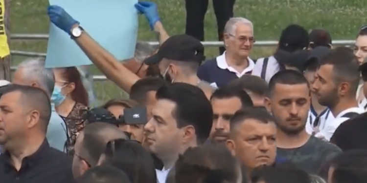 Këta të fundit ishin mbledhur më herët në selinë blu dhe e kanë shoqëruar Lulzim Bashën deri në sheshin para Galerisë së Arteve.