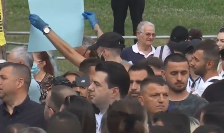 Këta të fundit ishin mbledhur më herët në selinë blu dhe e kanë shoqëruar Lulzim Bashën deri në sheshin para Galerisë së Arteve.