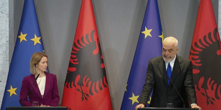 Kryeministri Edi Rama po zhvillon një konferencë me kryediplomaten e BE, Kaja Kallas, e cila ndodhet në Tiranë. Kreu i qeverisë theksoi edhe njëherë ambicien për të mbyllur negociatat për vendin tonë deri në vitin 2027. Po ashtu, Rama tha se Shqipëria është 100% në të njëjtën linjë me politikën e jashtme të BE.