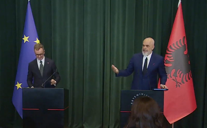 Kryeministri Edi Rama dhe Ambasadori i Bashkimit Europian në vendin tonë, Silvio Gonzato po mbajnë një konferencë për shtyp në kryeministri. Konferenca vjen një ditë pasi BE publikoi progress raportin për Shqipërinë për vitin 2025 ku vlerësonte progresin e shpejtë në negociata, luftën ndaj korrupsionit. Evidentohej gjithashtu edhe klima e tensionuar politike me një parlament jo plotësisht efikas.