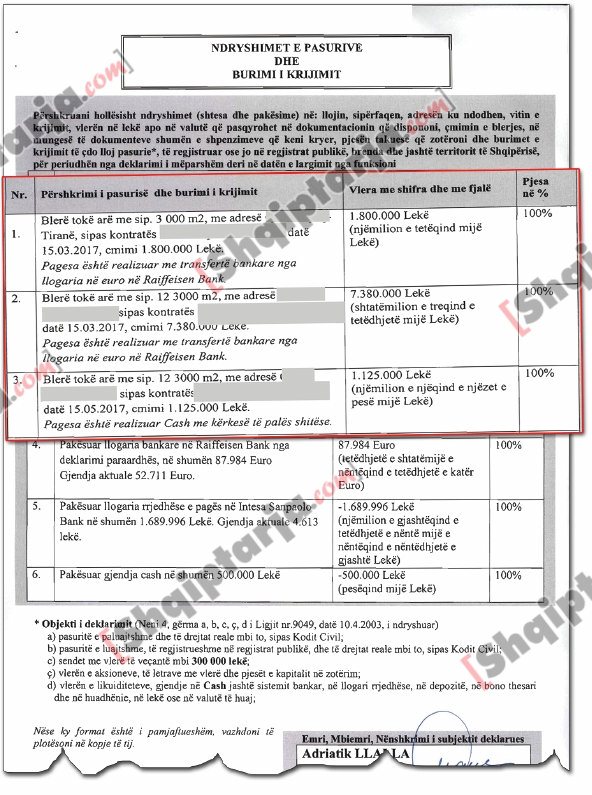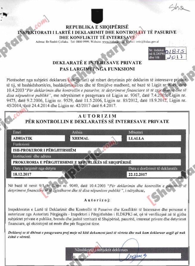 Ish-kryeprokurori Adriatik Llalla po ‘shkëlqen’ në biznesin e pronave. Por deklarata e pasurisë së tij për vitin 2017 rrethohet nga një mister, për shkak të një pasaktësie, e cila nuk dihet nëse është e qëllimshme apo shkak i një pakujdesie.