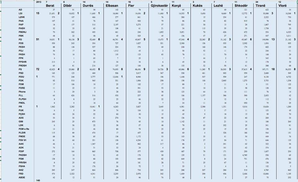 Më poshtë është edhe tabela e deputetëve që do të merrnin partitë sipas qarqeve, bazuar në rezultatet e zgjedhjeve të 2013-s. /tema/b.d