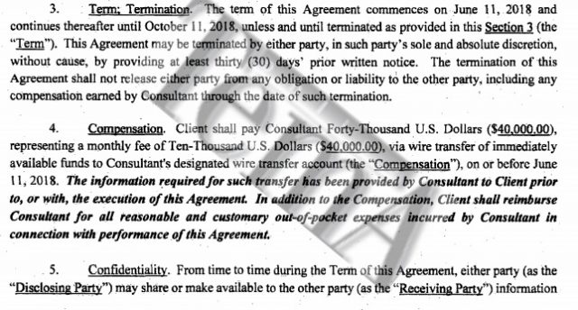 “Kompesimi: Klienti (Basha) do të paguajë konsulentin dyzet mijë dollarë amerikanë ($ 40.000.00).