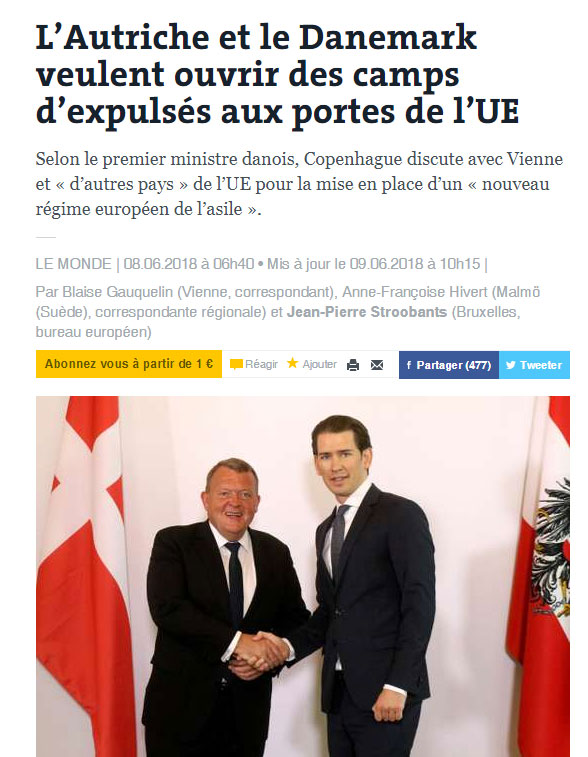 “Austria dhe Danimarka duan të hapin kampe të të dëbuarve në dyert e BE-së”. Me këtë titull, prestigjiozja franceze “Le Monde” shkruan se Danimarka dhe Austria, por dhe vende të tjera, po kristalizojnë idenë e tyre për ngritjen e kampeve për ata që kërkojnë azil në vendet e BE-së dhe atyre që u refuzohet kjo kërkesë.