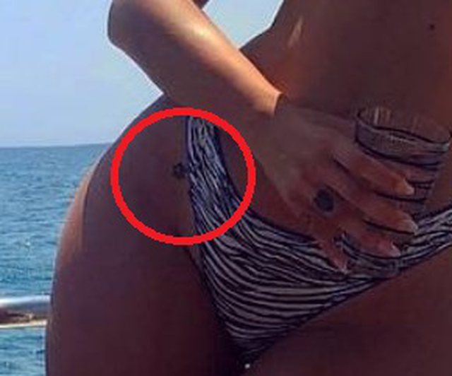 Në një nga fotot ku ajo shfaqet me bikini duke pozuar në jaht asaj i ka dalë zbuluar një tatuazh në zonën intime. Duhet pak mprehtësi syri për ta dalluar, por me pak “zoom” dhe përqëndrim do e dalloni.