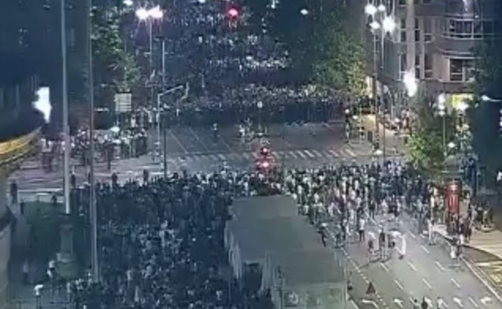 Sipas raportimeve nga mediat serbe në rrugën Stražilovska, persona të maskuar, të dyshuar si mbështetës të SNS-së, hodhën fishekzjarre dhe mjete piroteknike drejt protestuesve. Përplasja u ashpërsua kur qytetarët reaguan duke thyer dritaret e zyrave të partisë. Policia speciale ndërhyri me kordone sigurie, por tensionet vetëm u rritën.