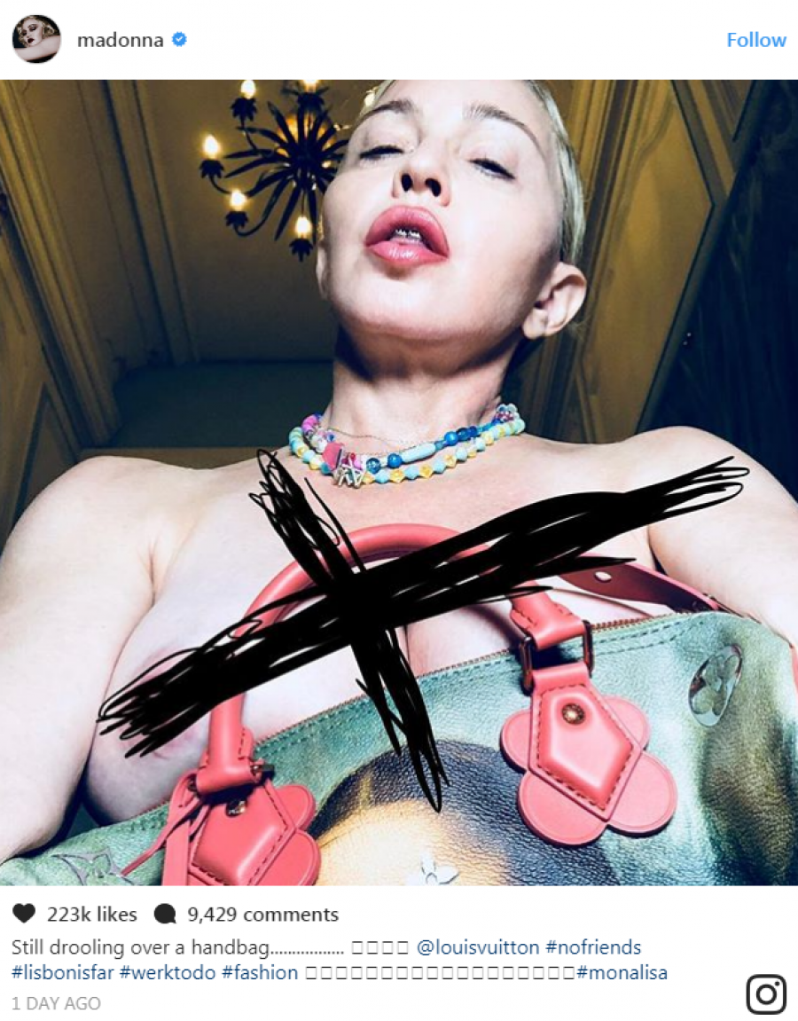 Bëhet fjalë për yllin e muzikës Madonna, e cila ka publikuar një foto në rrjetin social Instagram ku shfaqet topless dhe me make up agresiv.