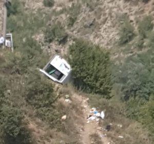 Siç shihet edhe nga pamjet, makina pas aksidentit ka rënë disa metra poshtë rrugës.