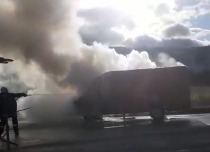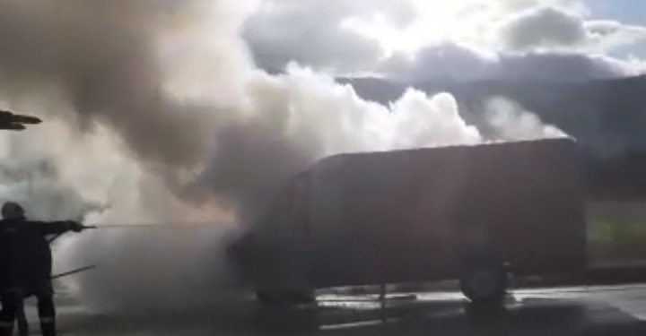 Një furgon mallrash është përfshirë nga flakët në aksin Korçë-Pogradec.