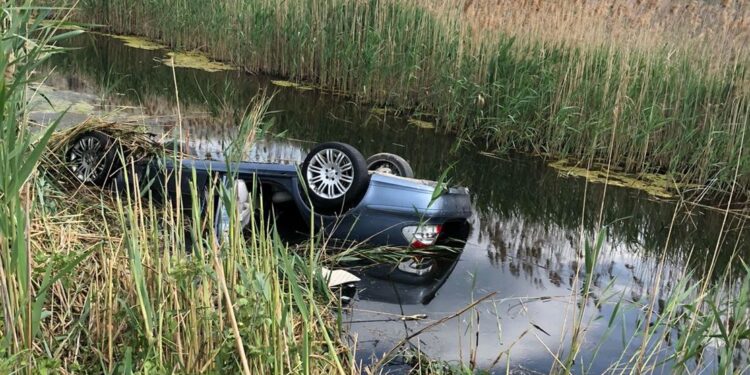 Mjeti ka dalë nga rruga dhe ka përfunduar e përmbysur në një kanal