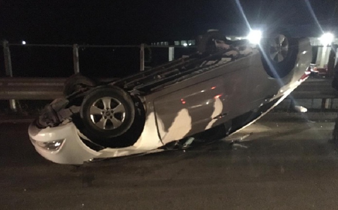 Një aksident rrugor ka ndodhur mbrëmjen e sotme në autostradën Levan-Vlorë. Një automjet tip “Honda” me targa AA 711CZ, është përplasur me trafikndarësen e rrugës në zonën e Novoselës, dhe më pas ka përfunduar e përmbysur në rrugë.