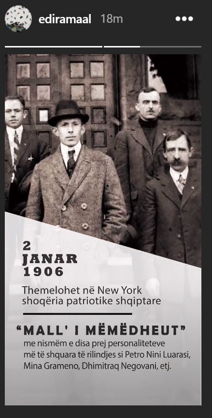 Në New York u themelua shoqëria patriotike shqiptare “Mall’ i Mëmëdheut.”