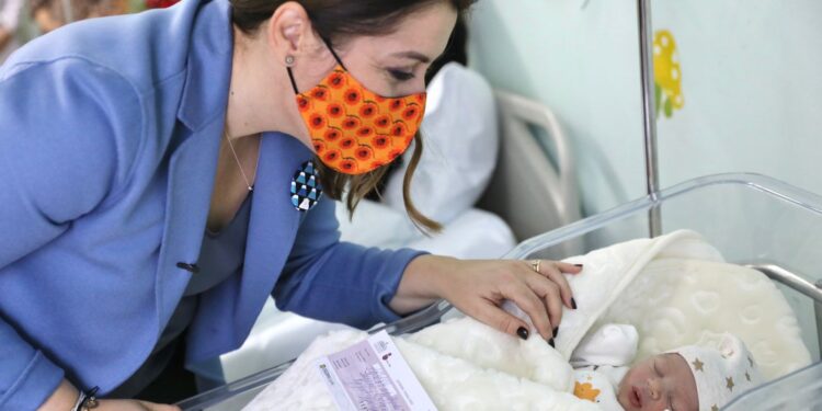 Në traditën e përvitshme, Ministrja Ogerta Manastirliu ishte mëngjesin e sotëm pranë fëmijëve të parë të vitit 2022, ku shpërndau çekun e bebes për të porsalindurit, me urimin që ky vit të jetë i shëndetshëm dhe i begatë për të gjithë shqiptarët.