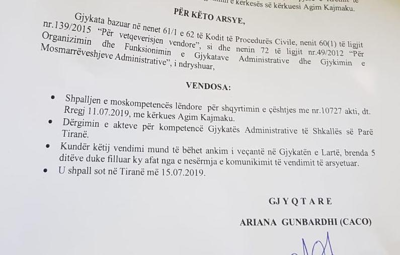 Në vendimin e dhënë nga Gjykata që në datën 15 korrik, thuhet se kjo kompetencë i kalohet Gjykatës Administrative.