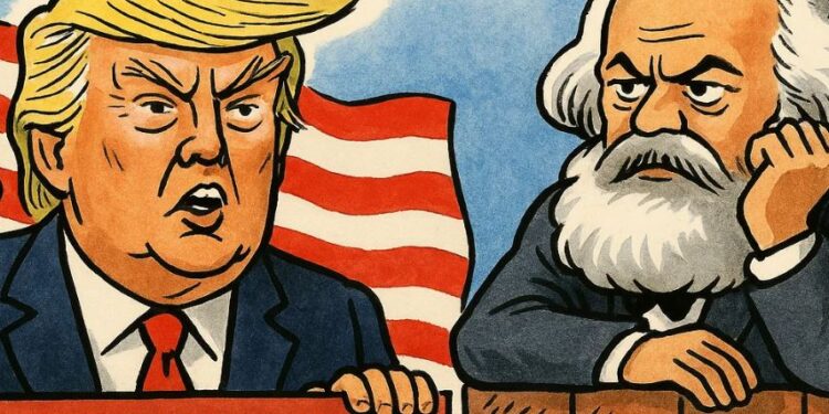 Në një kthesë që do ta bënte Karl Marx-in të buzëqeshte dhe Adam Smith-in të rrotullohej në varr, lëvizjet e fundit ekonomike të Presidentit Trump kanë krijuar pikërisht atë sistem socialist që mbështetësit e tij pretendojnë se e përbuzin. Përmes një sërë ndërhyrjesh që do ta bënin çdo planifikues qendror krenar, kampioni i sipërmarrjes së lirë është bërë udhëheqësi më efektiv socialist i Amerikës.