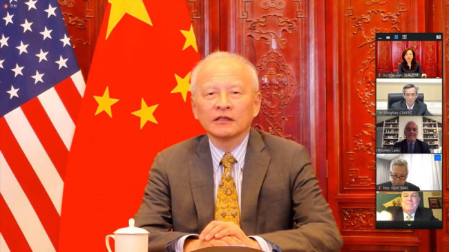 Në mesazhin e tij me video, ambasadori Cui tha se ligjvënësit e Kinës dhe ShBA-së janë të gjithë përfaqësues të publikut të gjerë. Ata kanë shprehur gatishmërinë e fortë të të dy popujve për të pasur shkëmbime miqësore me njëri-tjetrin.