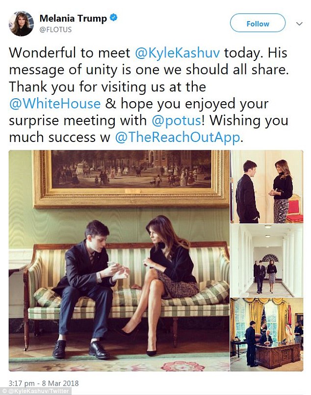 Zonja e Parë e SHBA priti në Shtëpinë e Bardhë, 16-vjeçarin Kyle Kashuv.
