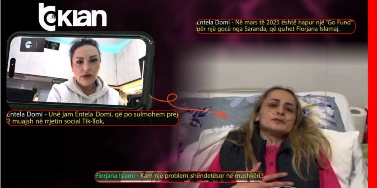 “Unë jam Entela Domi, që po sulmohem prej 2 muajsh në rrjetin social Tik-Tok, pas një mashtrimi, që unë kam zbuluar, përsa i përket fondeve, që bëhen, lekët, që mblidhen për të sëmurët në rrjetin social Tik-Tok. Në mars të 2025 është hapur një “Go Fund” për një gocë nga Saranda, që quhet Florjana Islamaj. Kam bërë një kontribut modest te ky rast, sepse më ka prek shumë, goca ishte në spital, jep e s’merr, sipas personave, që po mblidhnin këto lekë. Janë mbledh 200 mijë $, ku 154 mijë $ janë mbledh me Bankë, janë transferua te llogaria e gocës dhe 46 mijë $ janë mbledh nga persona të afërt, nga bizneset. Goca ishte në Tiranë e shtruar në atë kohë për Fibrozë Çistike edhe këto lekë u donin me patjetër, që sipas tyre, kishin fol në Itali dhe kishte nevojë urgjente për një transplant mushkërie”, denoncon Entela Domi.