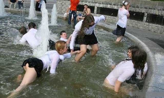 Më pas, tradita është që maturantët të shkojnë e të festojnë ditën e fundit bashkë te shatërvani ose te lumi i qytetit.
