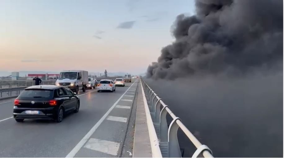 Mbetjet digjen në anë të rrugës në Milot, autostrada mbushet plot me tym